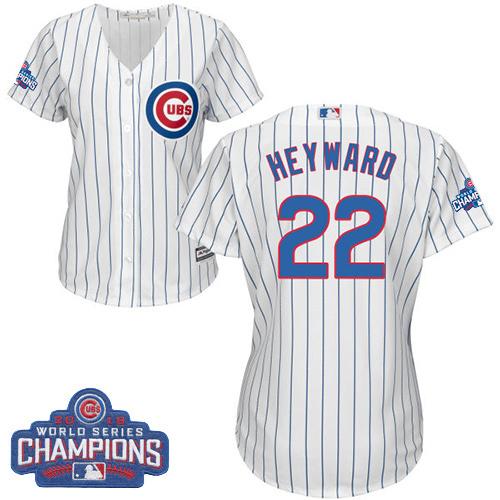 Cubs #22 Jason Heyward White(Blue Strip) Home 2016 World Series Champions Women's Stitched MLB Jersey