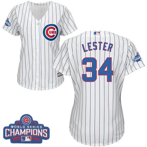 Cubs #34 Jon Lester White(Blue Strip) Home 2016 World Series Champions Women's Stitched MLB Jersey