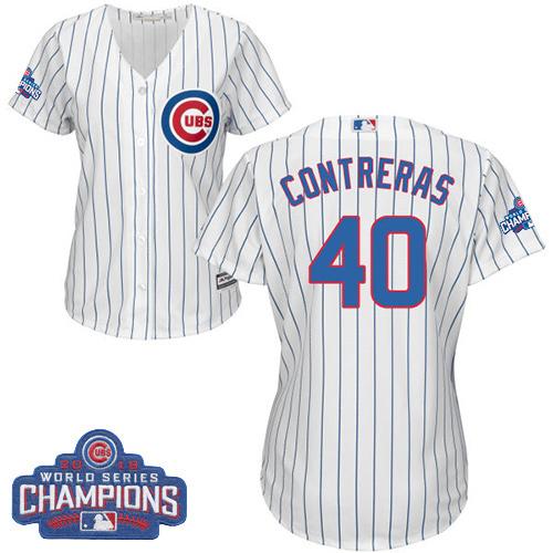 Cubs #40 Willson Contreras White(Blue Strip) Home 2016 World Series Champions Women's Stitched MLB Jersey