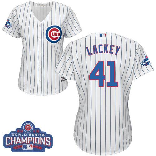 Cubs #41 John Lackey White(Blue Strip) Home 2016 World Series Champions Women's Stitched MLB Jersey