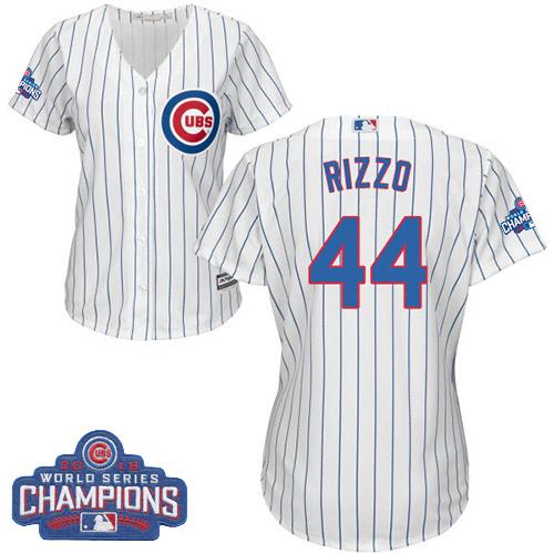 Cubs #44 Anthony Rizzo White(Blue Strip) Home 2016 World Series Champions Women's Stitched MLB Jersey