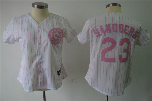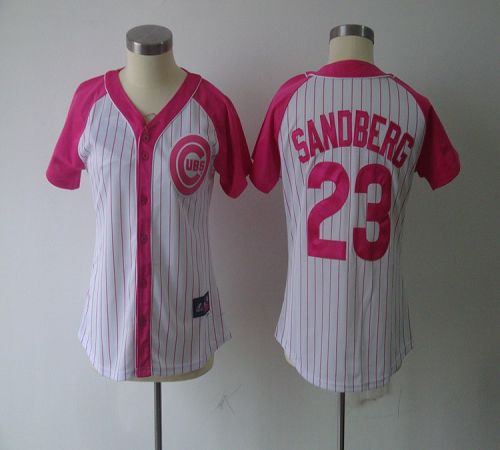 Cubs #23 Ryne Sandberg White Pink Number Women's Fashion Stitched MLB Jersey