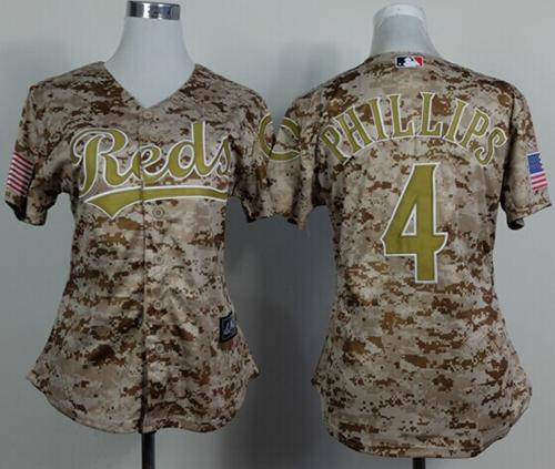 Reds #4 Brandon Phillips Camo Women's Alternate Cool Base Stitched MLB Jersey