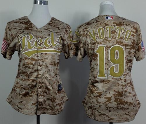 Reds #19 Joey Votto Camo Women's Alternate Cool Base Stitched MLB Jersey