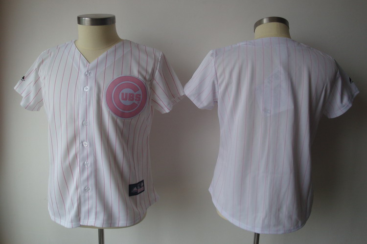 Cubs Blank White With Pink Strip Women's Fashion Stitched MLB Jersey