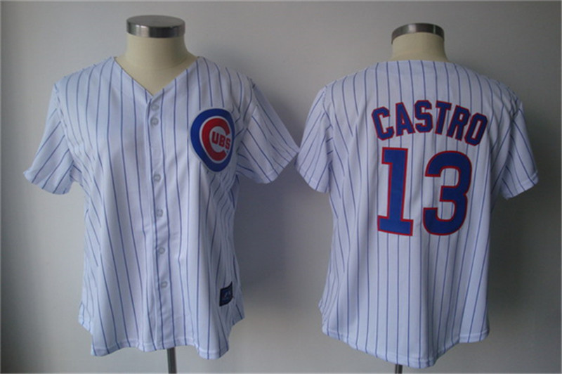 Cubs #13 Starlin Castro White Blue Strip Women's Fashion Stitched MLB Jersey
