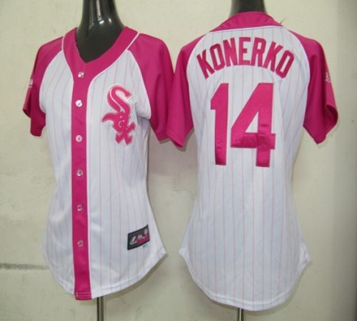 White Sox #14 Paul Konerko White/Pink Women's Splash Fashion Stitched MLB Jersey