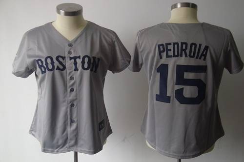 Red Sox #15 Dustin Pedroia Grey Women's Fashion Stitched MLB Jersey