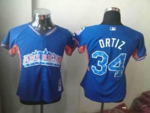 Red Sox #34 David Ortiz Blue 2013 All-Star Women's Stitched MLB Jersey