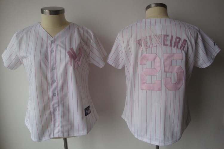 Yankees #25 Mark Teixeira White With Pink Strip Women's Fashion Stitched MLB Jersey