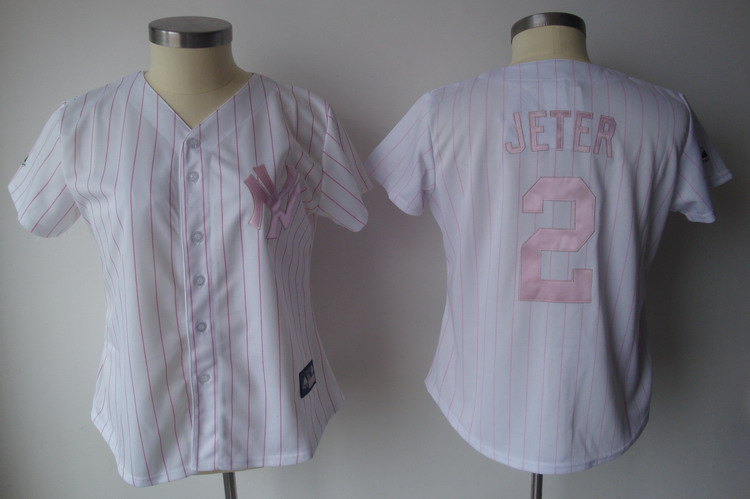 Yankees #2 Derek Jeter White With Pink Strip Women's Fashion Stitched MLB Jersey