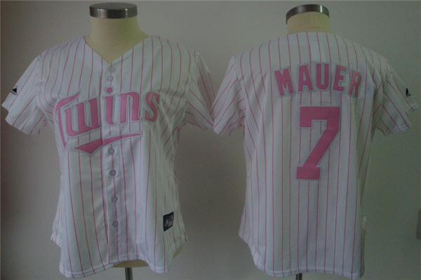 Twins #7 Joe Mauer White Pink Strip Women's Fashion Stitched MLB Jersey
