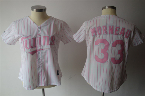 Twins #33 Justin Morneau White Pink Number Women's Fashion Stitched MLB Jersey