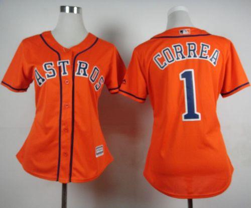 Astros #1 Carlos Correa Orange Alternate Women's Stitched MLB Jersey
