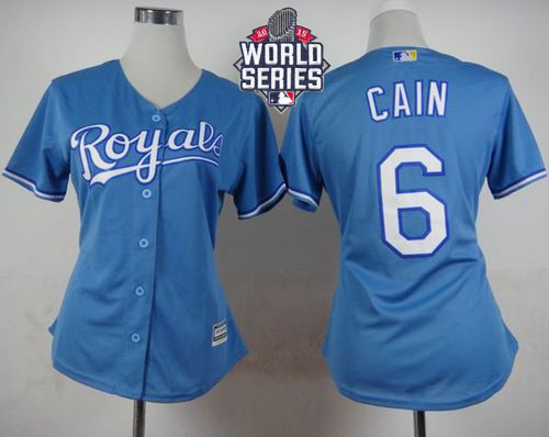 Royals #6 Lorenzo Cain Light Blue Alternate 1 W/2015 World Series Patch Women's Stitched MLB Jersey