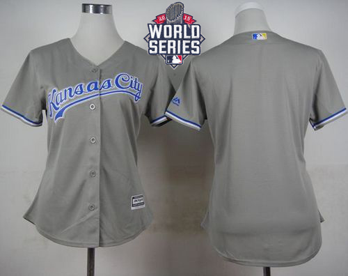 Royals Blank Grey Road W/2015 World Series Patch Women's Stitched MLB Jersey