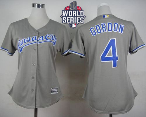 Royals #4 Alex Gordon Grey Road W/2015 World Series Patch Women's Stitched MLB Jersey
