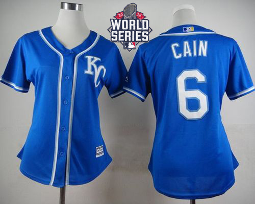 Royals #6 Lorenzo Cain Blue Alternate 2 W/2015 World Series Patch Women's Stitched MLB Jersey