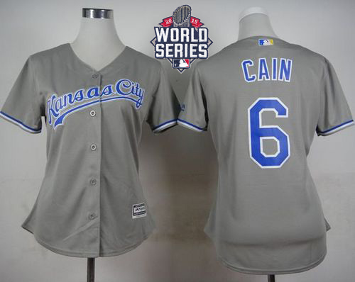 Royals #6 Lorenzo Cain Grey Road W/2015 World Series Patch Women's Stitched MLB Jersey
