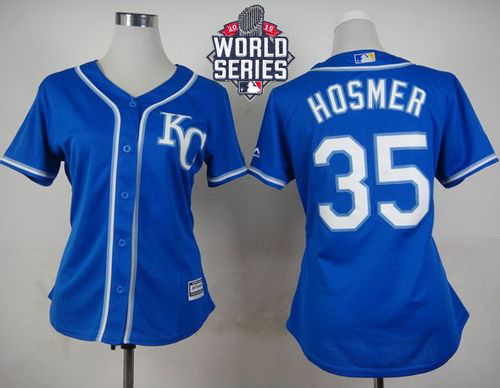 Royals #35 Eric Hosmer Blue Alternate 2 W/2015 World Series Patch Women's Stitched MLB Jersey
