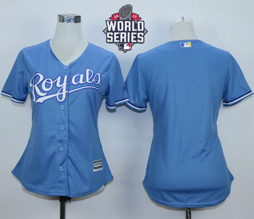 Royals Blank Light Blue Alternate 1 W/2015 World Series Patch Women's Stitched MLB Jersey