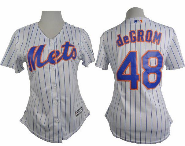 Mets #48 Jacob deGrom White(Blue Strip) Women's Home Stitched MLB Jersey