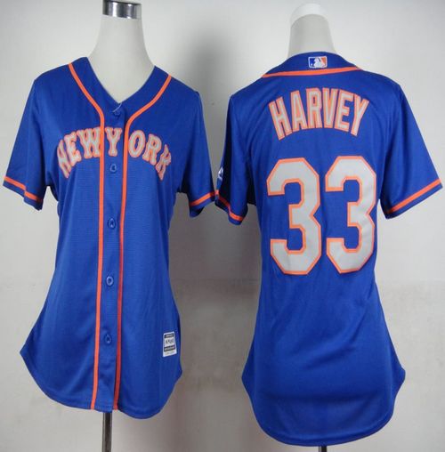 Mets #33 Matt Harvey Blue Alternate Women's Stitched MLB Jersey
