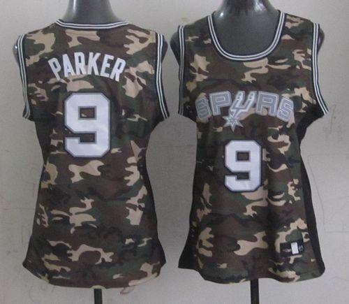 Spurs #9 Tony Parker Camo Women's Stealth Collection Stitched NBA Jersey