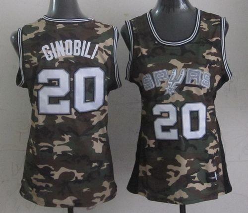 Spurs #20 Manu Ginobili Camo Women's Stealth Collection Stitched NBA Jersey