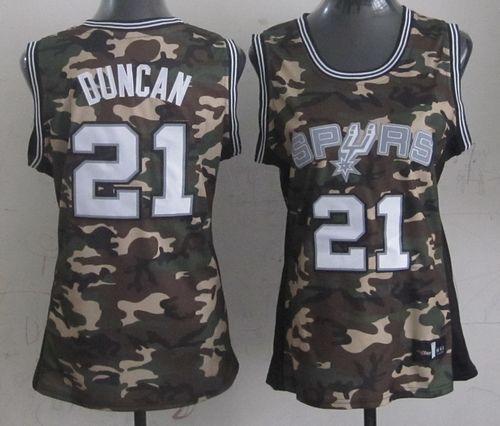 Spurs #21 Tim Duncan Camo Women's Stealth Collection Stitched NBA Jersey