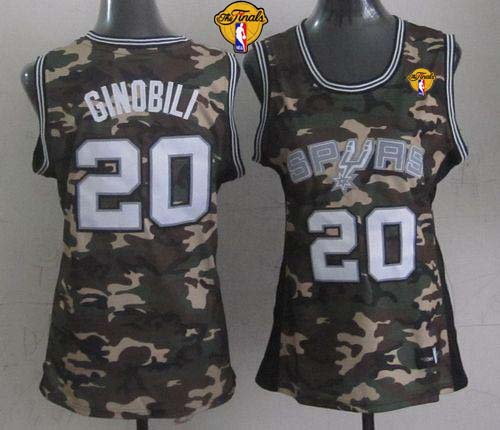 Spurs #20 Manu Ginobili Camo With Finals Patch Women's Stealth Collection Stitched NBA Jersey