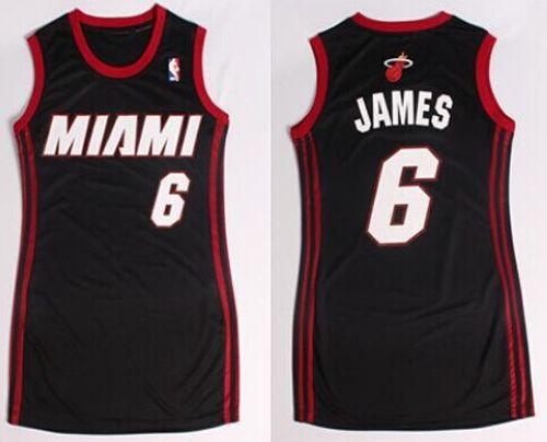 Heat #6 LeBron James Black Women's Dress Stitched NBA Jersey