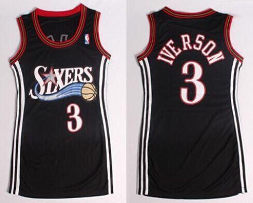 76ers #3 Allen Iverson Black Women's Dress Stitched NBA Jersey