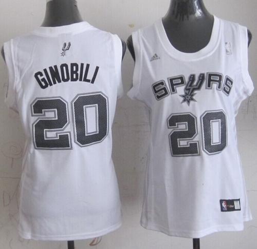 Spurs #20 Manu Ginobili White Women's Fashion Stitched NBA Jersey