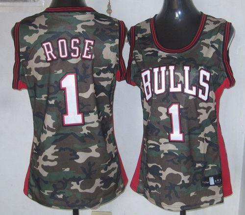 Bulls #1 Derrick Rose Camo Women's Stealth Collection Stitched NBA Jersey