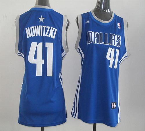 Mavericks #41 Dirk Nowitzki Blue Women's Road Stitched NBA Jersey