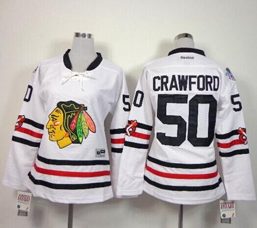 Blackhawks #50 Corey Crawford White 2015 Winter Classic Women's Stitched NHL Jersey