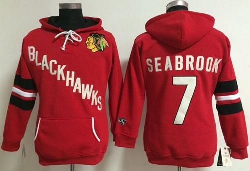 Chicago Blackhawks #7 Brent Seabrook Red Women's Old Time Heidi NHL Hoodie