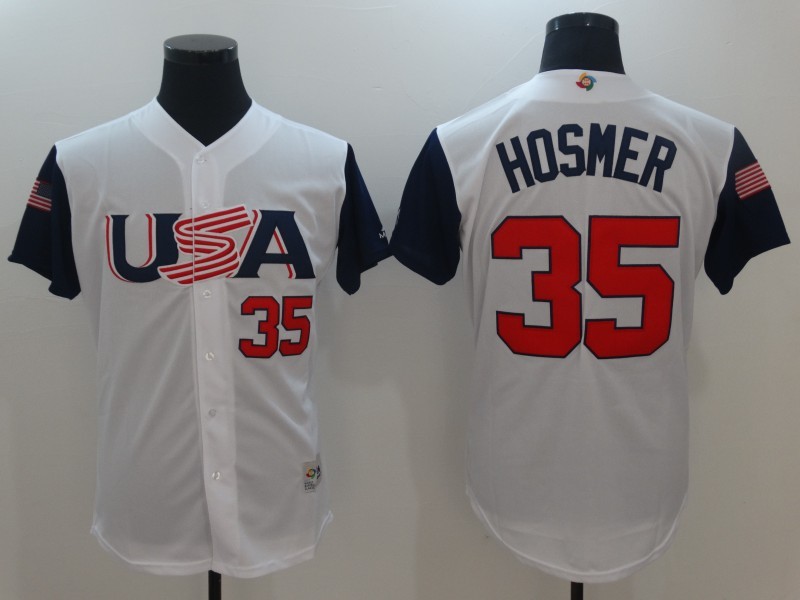 Men's USA Baseball #35 Eric Hosmer White 2017 World Baseball Classic Stitched WBC Jersey