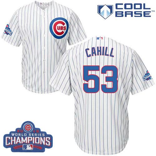 Cubs #53 Trevor Cahill White Home 2016 World Series Champions Stitched Youth MLB Jersey
