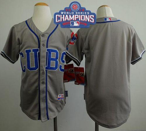 Cubs Blank Grey Alternate Road Cool Base 2016 World Series Champions Stitched Youth MLB Jersey