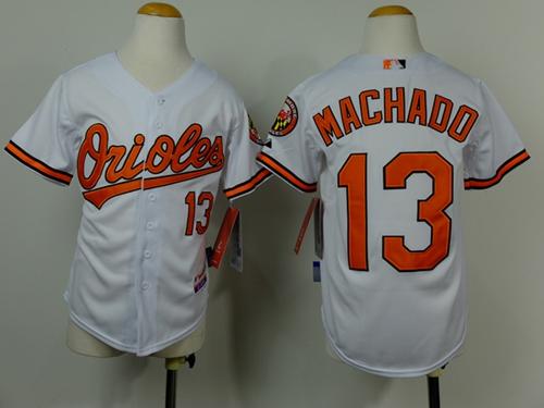Orioles #13 Manny Machado White Cool Base Stitched Youth MLB Jersey