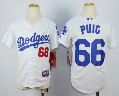 Dodgers #66 Yasiel Puig White Cool Base Stitched Youth MLB Jersey