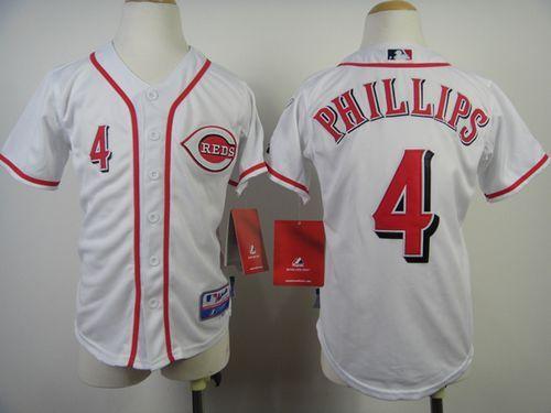 Reds #4 Brandon Phillips White Cool Base Stitched Youth MLB Jersey