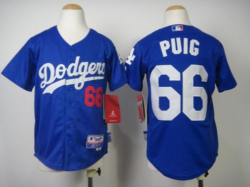 Dodgers #66 Yasiel Puig Blue Cool Base Stitched Youth MLB Jersey