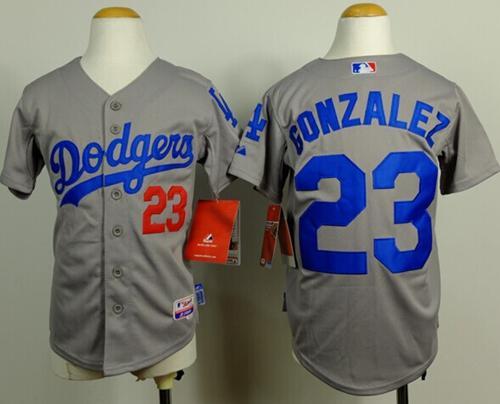 Dodgers #23 Adrian Gonzalez Grey Cool Base Stitched Youth MLB Jersey