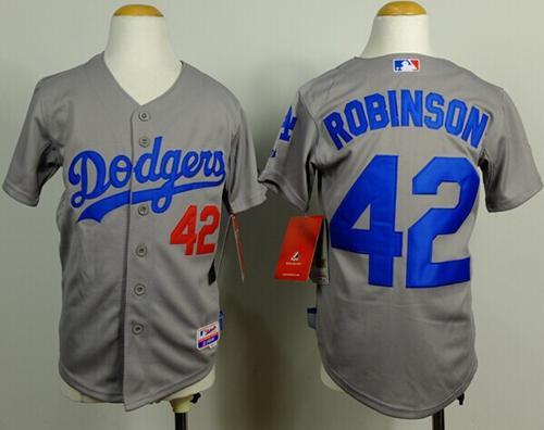 Dodgers #42 Jackie Robinson Grey Cool Base Stitched Youth MLB Jersey
