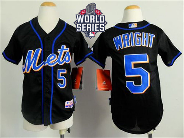 Mets #5 David Wright Black Cool Base W/2015 World Series Patch Stitched Youth MLB Jersey