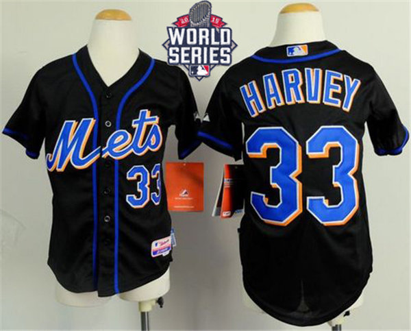 Mets #33 Matt Harvey Black Cool Base W/2015 World Series Patch Stitched Youth MLB Jersey
