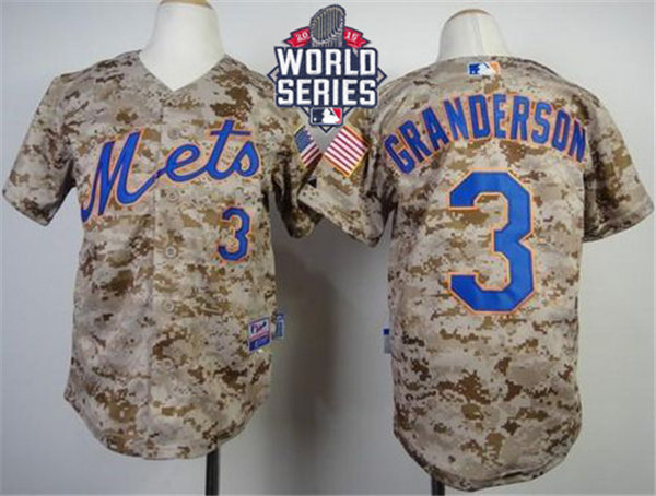 Mets #3 Curtis Granderson Camo Alternate Cool Base W/2015 World Series Patch Stitched Youth MLB Jersey